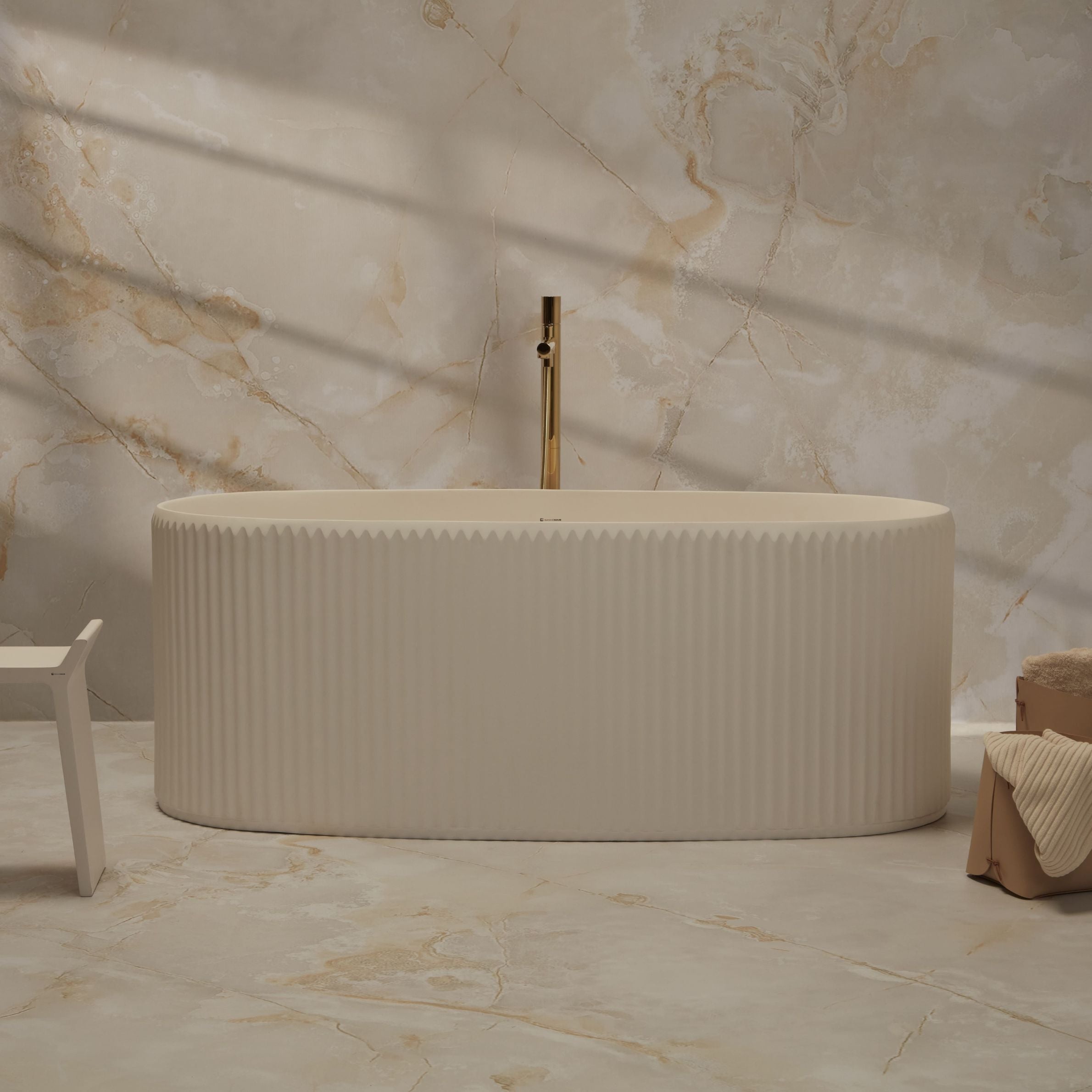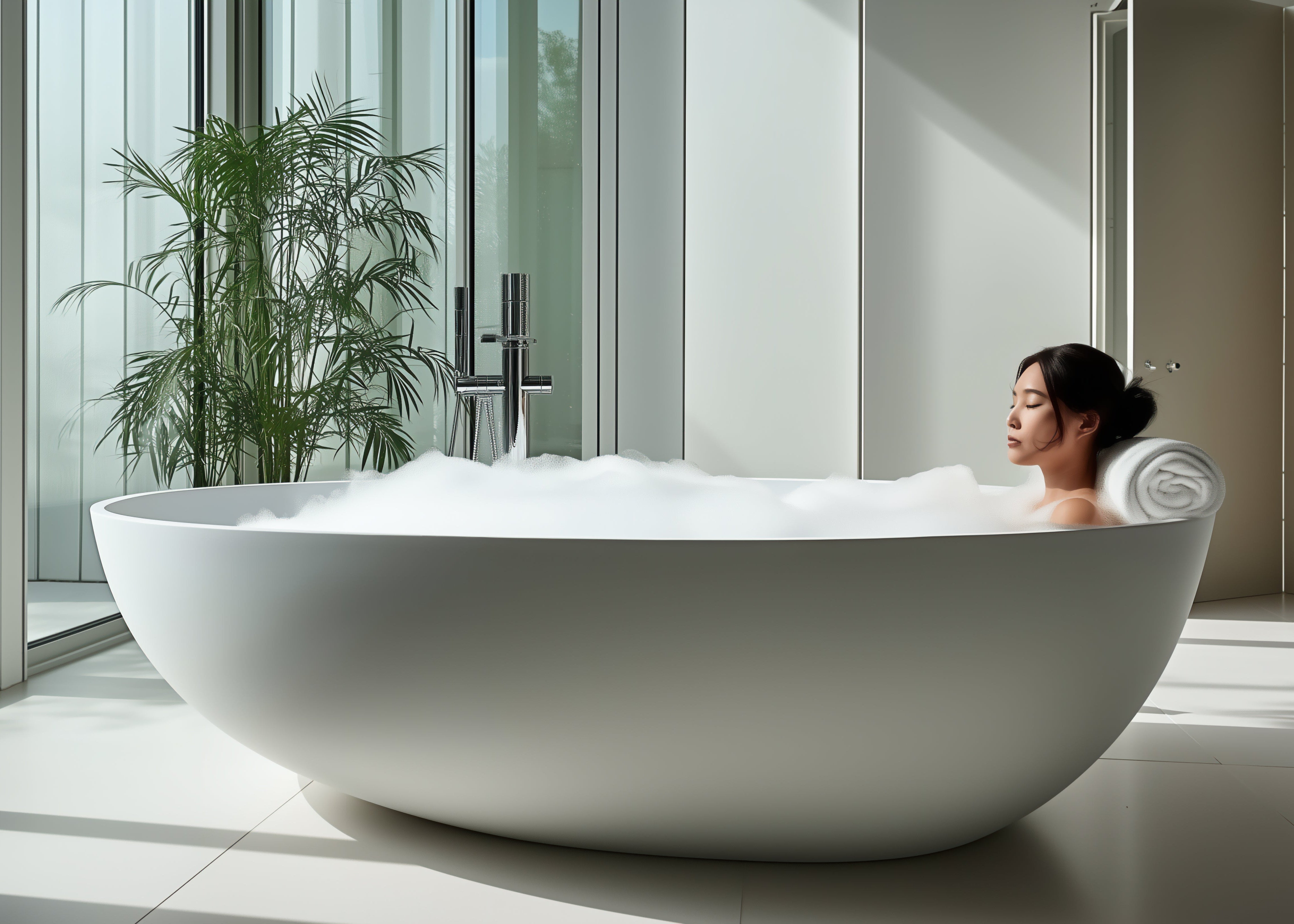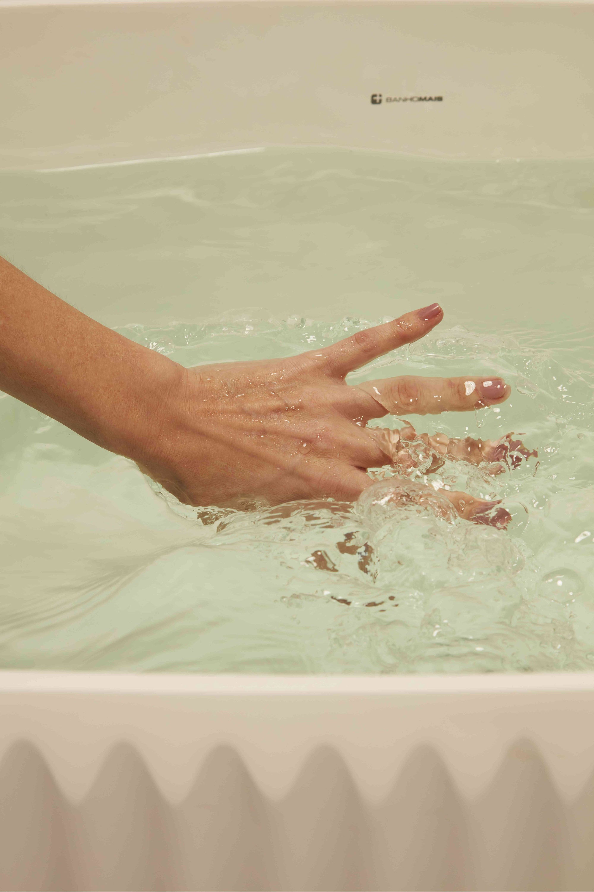 JOY é uma banheira que celebra a leveza e a serenidade dos momentos de relaxamento.