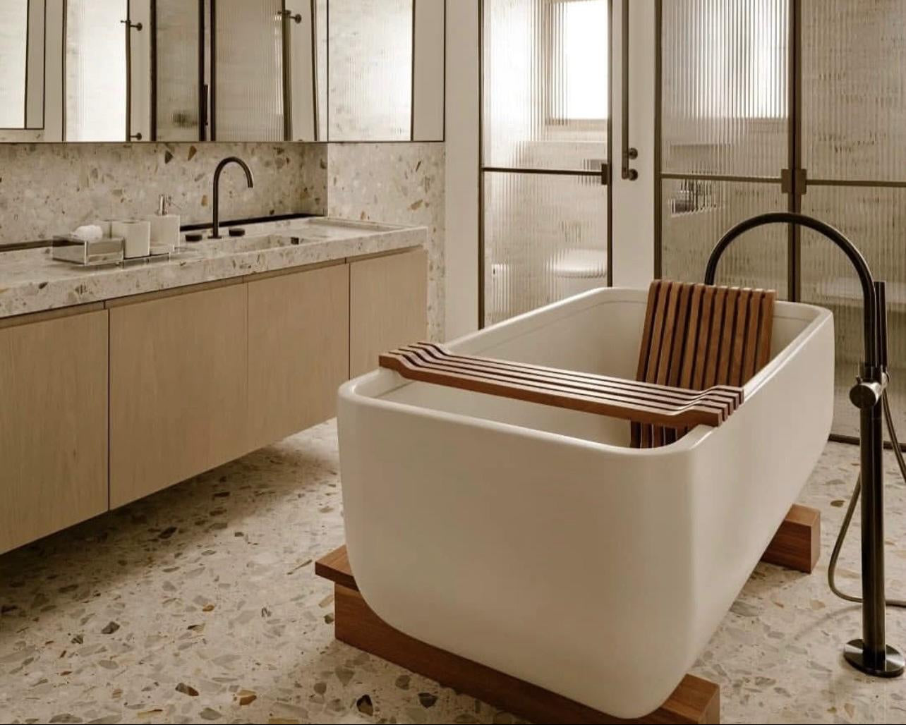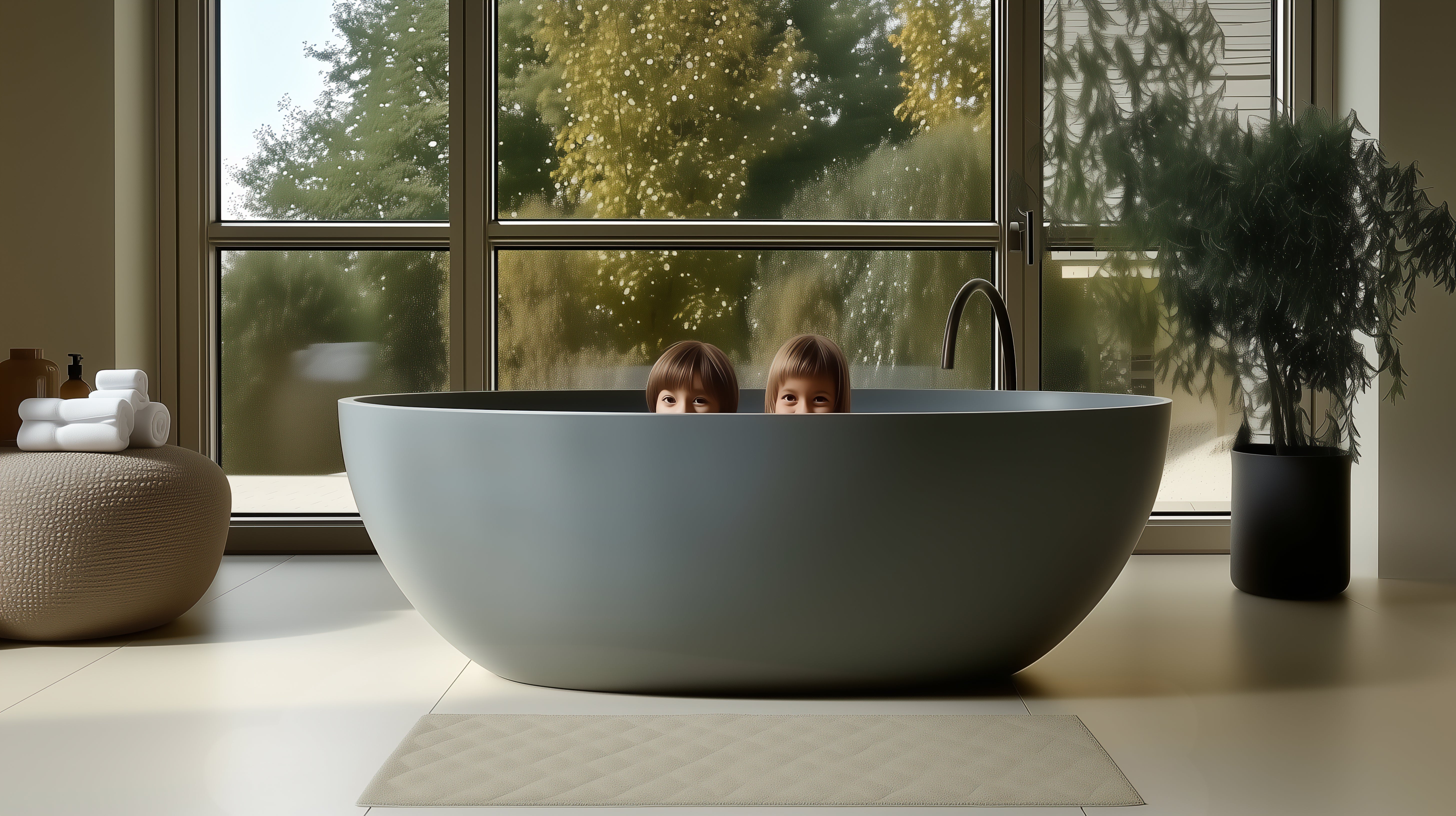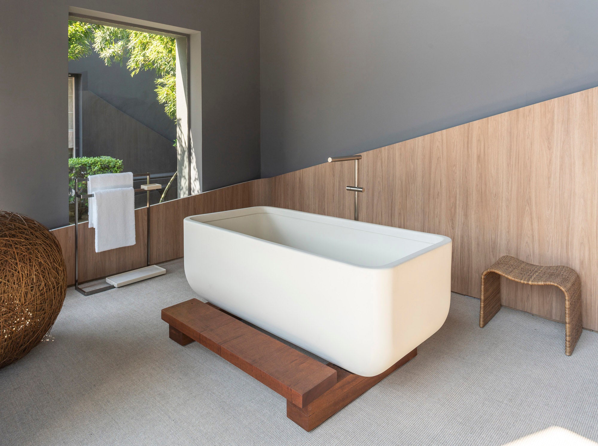 JOY é uma banheira que celebra a leveza e a serenidade dos momentos de relaxamento.